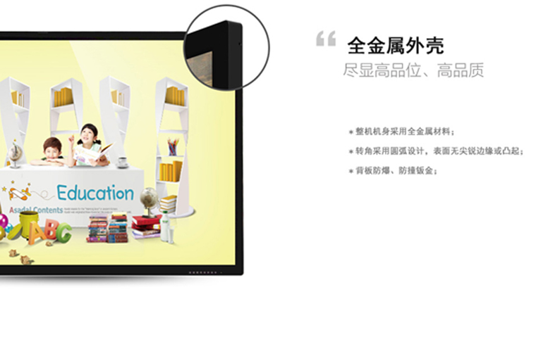 4、其外觀以拉絲烤漆顯得更加華麗,重量不超過60kg,機身超薄僅84mm,且待機功耗僅0.5W,是一款既時尚又低碳環保的電子白板。